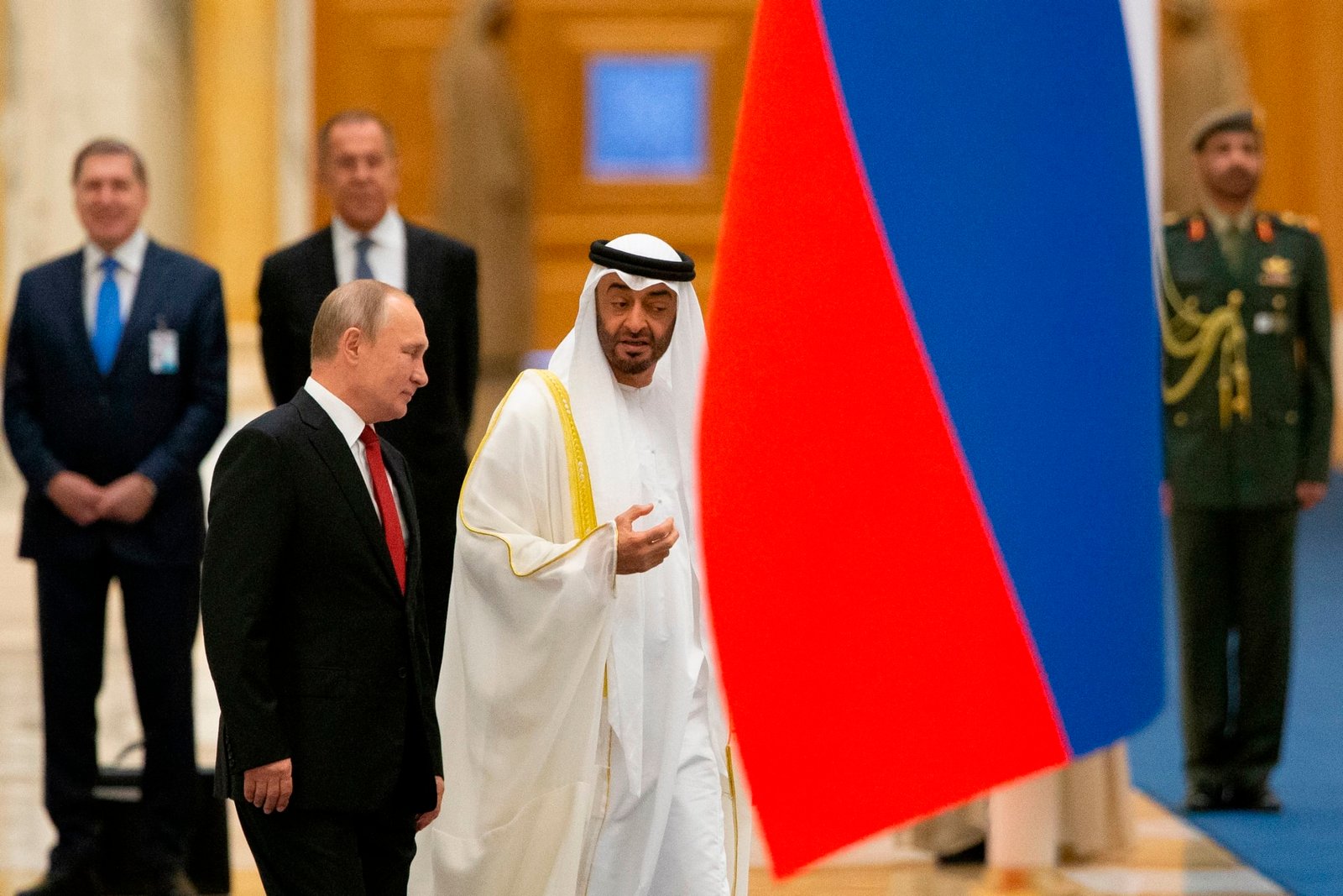 في 11 من أكتوبر الماضي، توجهت أنظار العالم نحو مدينة سانت بطرسبورغ الروسية، لمتابعة لقاء صاحب السمو الشيخ محمد بن زايد آل نهيان رئيس الدولة، مع الرئيس الروسي فلاديمير بوتين. وأكد سموه خلال اللقاء، سعي دولة الإمارات إلى الإسهام في تعزيز أسس السلام والاستقرار في العالم، والعمل على خفض التوترات. وشدد سموه على سياسة دولة الإمارات الداعمة للسلام والاستقرار على الساحتين الإقليمية والدولية، والداعية إلى ضرورة استمرار المشاورات الجادة لحل الأزمة الأوكرانية، عبر الحوار والتفاوض والآليات الدبلوماسية.