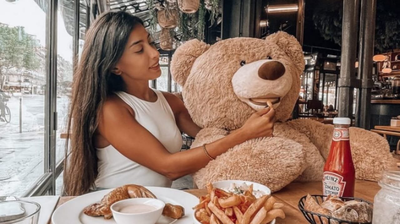 As usual and in an idyllic scene, Elsa looked gorgeous and glamorous feeding her Teddy Bear on the dining table. Her cuteness and comfort gave a feeling of happiness and joy.